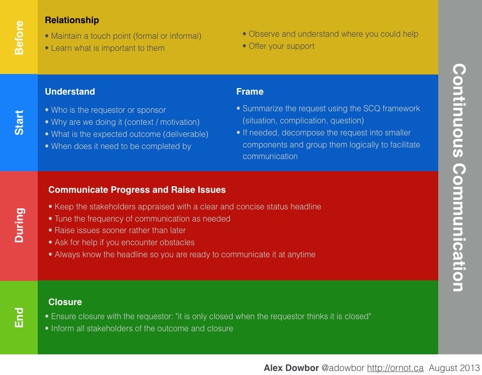 Open and clear communication is often a key success factor in the execution and delivery of projects of all sizes. Yet, we not always give it the attention it deserves. The guidelines below are particularly useful in raising communication awareness with newer team members when taking up new assignments or projects.